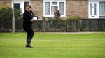All it takes is a little forward planning. You need to produce photo ID at the guardhouse, and they’ll take your photo and issue you with a pass to flash at the gate. From there, it’s a short drive through the Domestic Site of the base to the sports ground on Lancaster Way. There’s football, rugby and cricket, as well as a fitness trail, and its as sick and span as you’d expect at a military base. This game was played on a different pitch than normal, as with cricket taking precedence, the football was shunted away from the clubhouse.