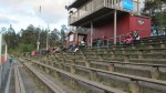 Nacka IP is a case in point, with the oh-so-common running track and ice rink looming behind. Nacka of Division 2 Norra Svealand have recently vacated the facility and Järla have taken their chance. It’s got character, with the natural features allowing a wooden step-terrance on both sides. It gives quite a large capacity, and plenty of choice for viewing positions. There was a club-run cafe selling Kaffe (coffee), cakes and Korv med brud (hot dogs). Behind one goal a group of ice skaters trained in the track infill.